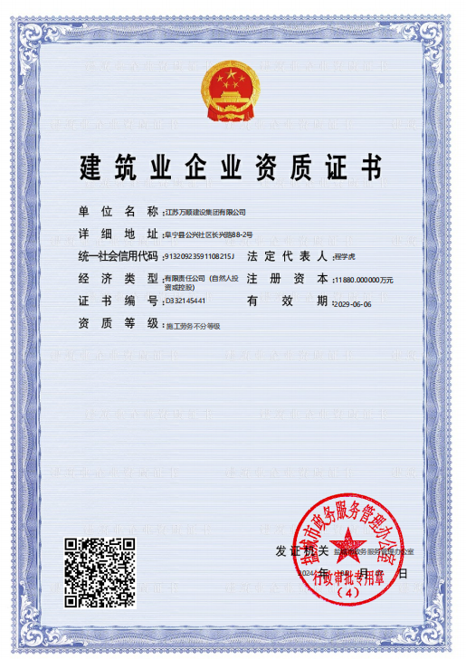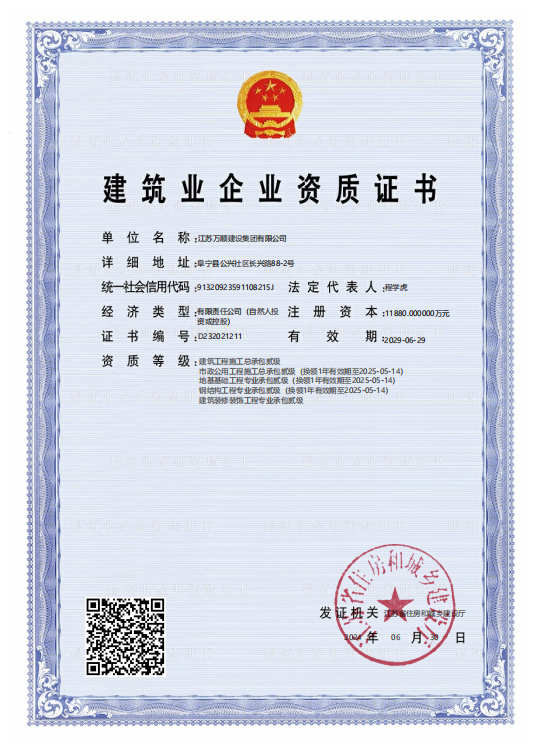 集團實力雄厚,管理科學,人才優(yōu)勢明顯,注冊資本11880萬元,現有職工1600余人,擁有工程技術、經濟管理等專業(yè)管理人才186人。集團下轄江蘇萬順建設集團有限公司、江蘇萬順建材有限公司、江蘇陽順貿易有限公司、江蘇金天元建筑勞務有限公司、阜寧廣牛項目管理有限公司。